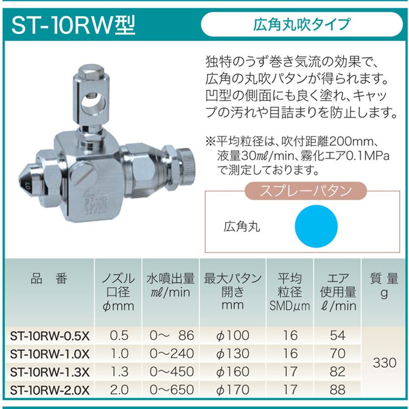 其中,ST-10W的噴幅空氣為0.25MPa條件下測定之數值。