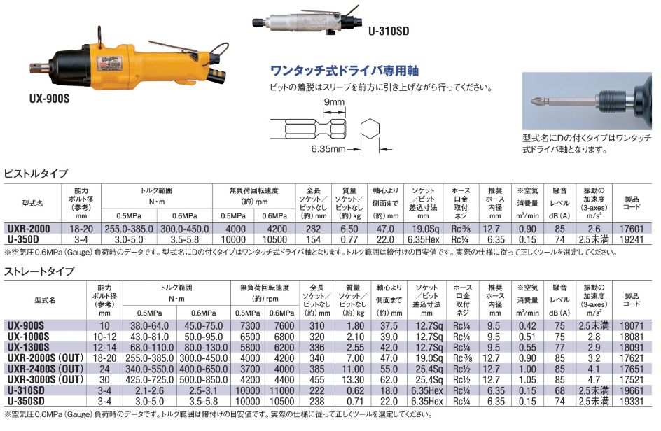 详细信息| 询价留言品牌:日本URYU瓜生 型号:UX-900S 加工定制:否 耗气量:1 m3/min 产地:日本 方头尺寸:3/4 in 空转速度:7600 r/min 驱动杆尺寸:1/2 mm 扭力:1 n.m 进气管尺寸:1/4 in 长度:154 mm 重量:1.2 kg 进气口尺寸:1/4 in 螺栓规格:1 噪音值:1 振动值:1 螺栓规格:1 噪音值:1 -