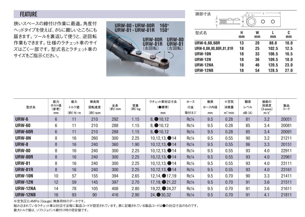 日本URYU瓜生URW-6气动穿孔棘轮扳手 日本瓜生气动封闭型棘轮扳子