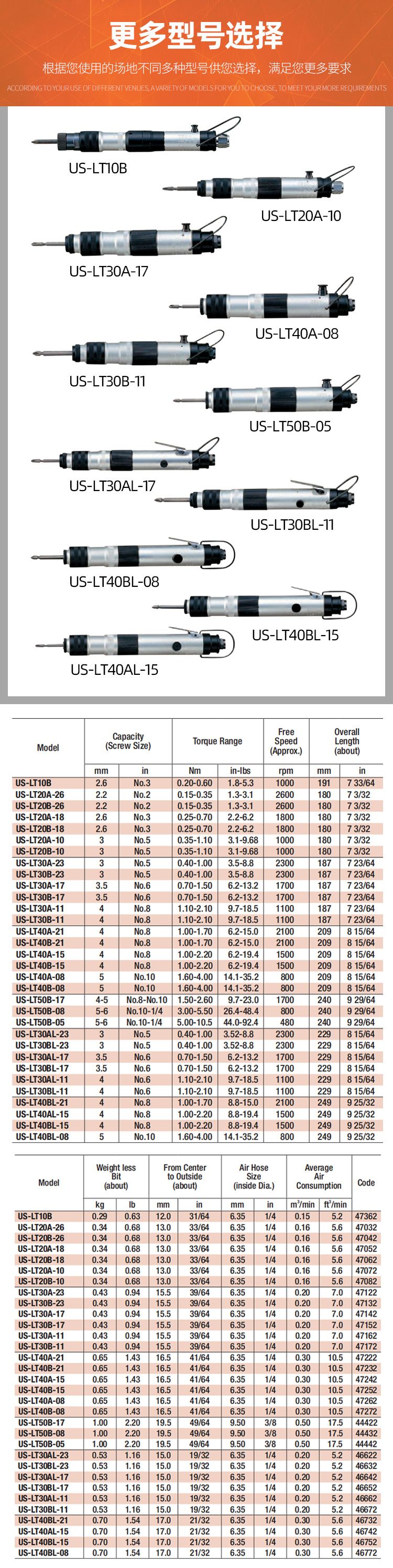 日本URYU瓜生US-LT40B-15气动螺丝刀定扭气动螺丝起子机 直柄风批