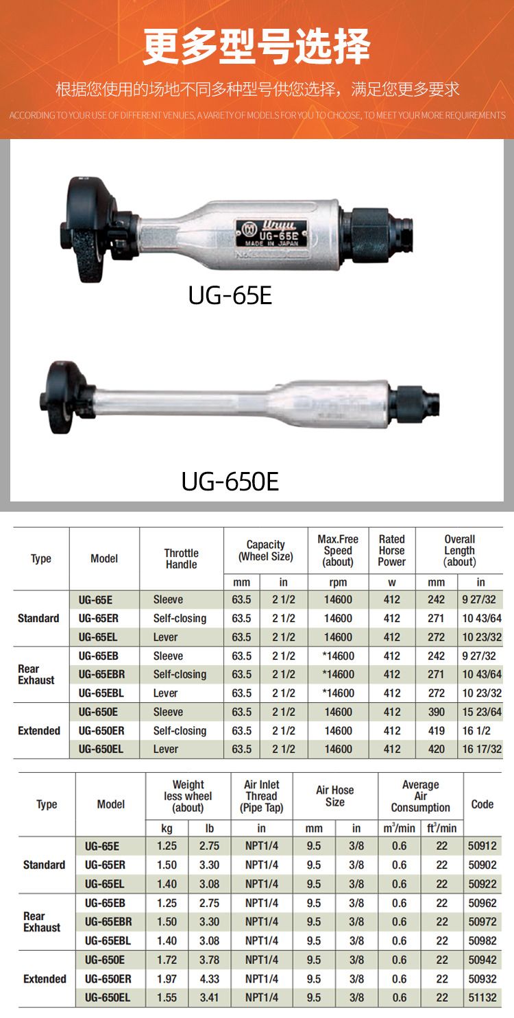日本URYU瓜生UG-650ER气动砂轮机气动刻磨机气动修磨机气动打磨机