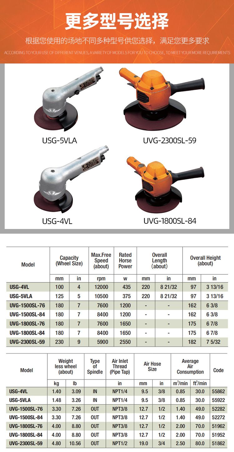 日本URYU瓜生UVG-1800SL-59气动砂轮机 9寸气动角向打磨机 磨光机