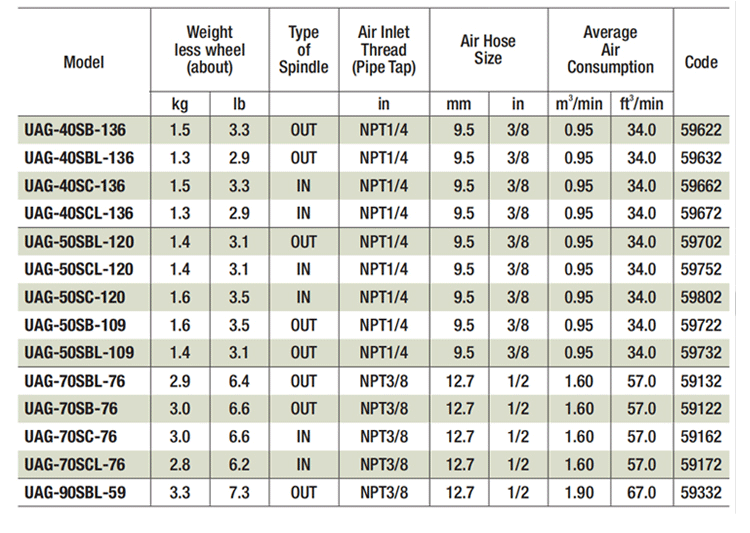 详细信息| 询价留言品牌:日本URYU瓜生 型号:UAG-50SBL-120 加工定制:否 分类:气动打磨机 盘径 :150 inch 空载转速:12000 rpm 用途:打磨 研磨 抛光 盘径 :150 inch 空载转速:12000 rpm -