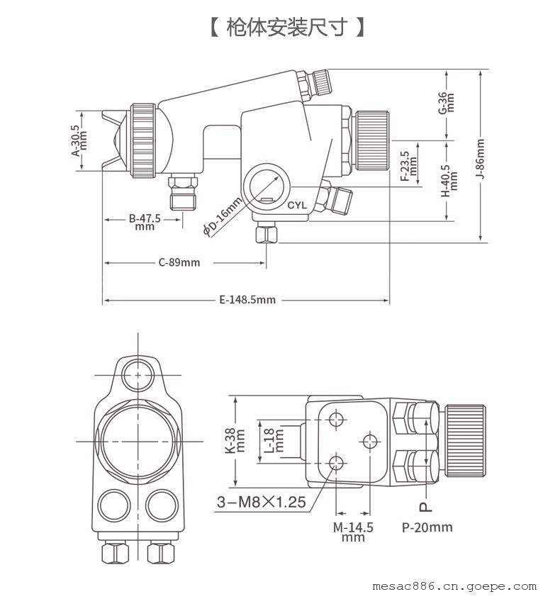 美萨克LPA-101自动喷漆枪 低压高雾化省漆流水线往复机机器人喷头