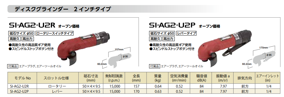 日本SHINANO信浓SI-AG2-U2P气动角磨机2寸气动打磨机砂轮机切割机