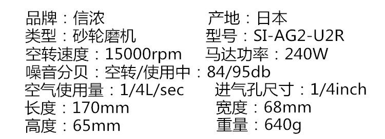 日本SHINANO信浓SI-AG2-U2R气动角磨机2寸气动砂轮机打磨机磨光机