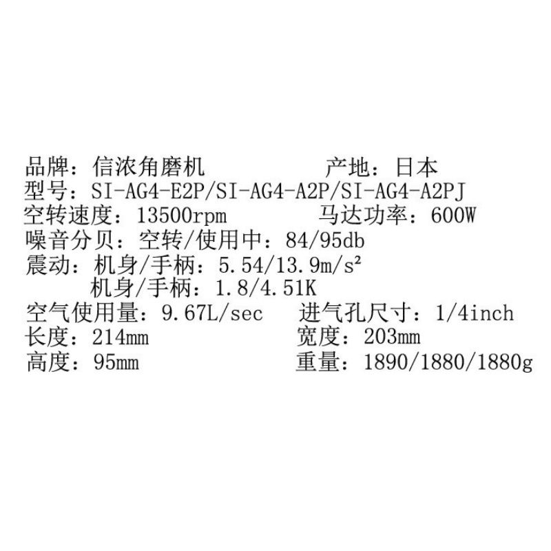 日本SHINANO信浓SI-AG4-A2P气动打磨机4寸气动角磨机砂轮机抛光机