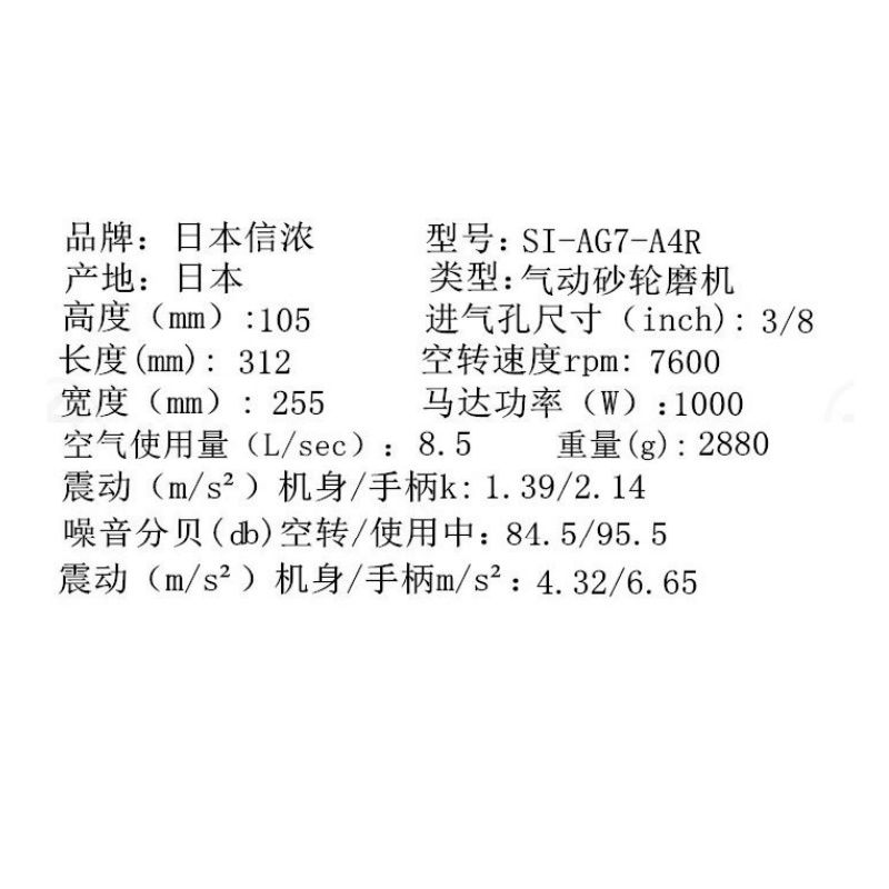 详细信息| 询价留言品牌:日本SHINANO信浓 型号:SI-AG7-A4R 加工定制:否 分类:高速气动打磨机 盘径 :180 inch 空载转速:7600 rpm 用途:打磨 盘径 :180 inch 空载转速:7600 rpm -