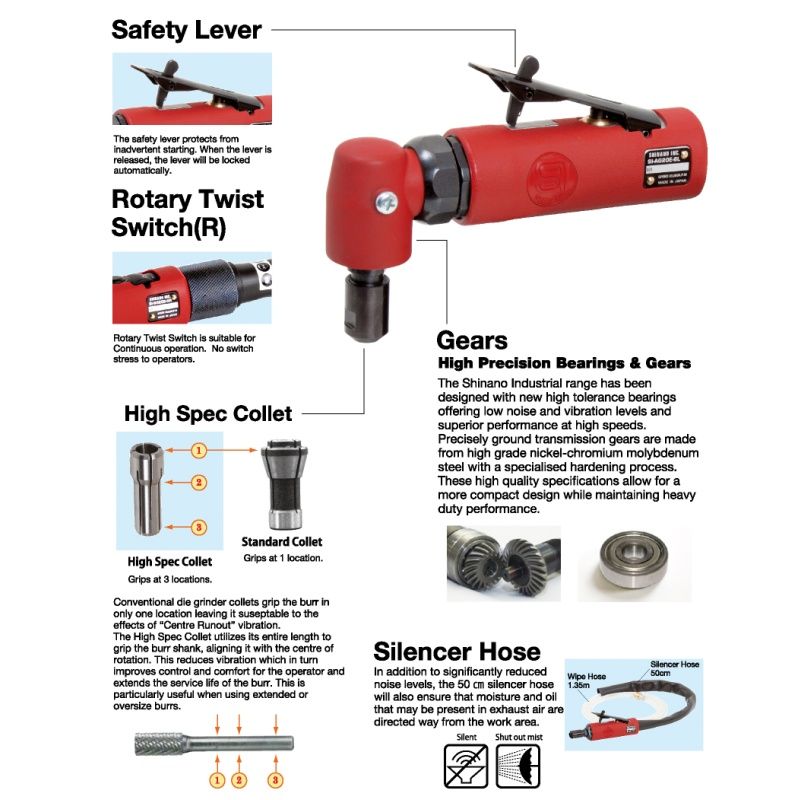 日本SHINANO信浓SI-AG20E-6R气动刻磨机90度直角气动磨模机风磨机