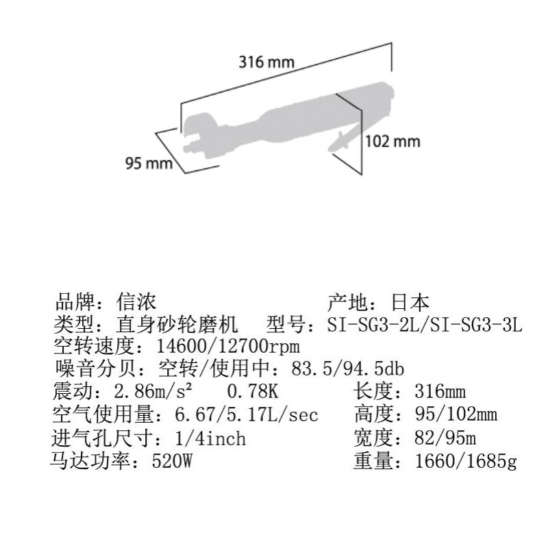 日本SHINANO信浓SI-SG3-3L气动抛光机 气动打磨机 直式气动磨光机