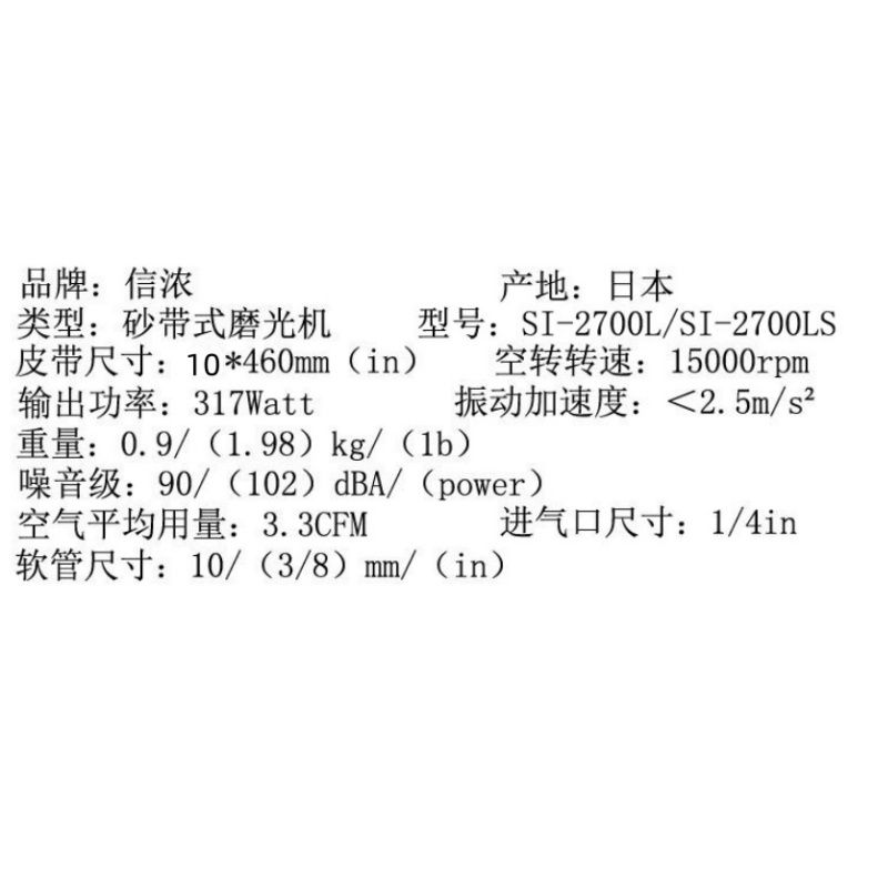 日本SHINANO信浓SI-2700LS气动砂带机手持环带打磨机抛光机磨光机