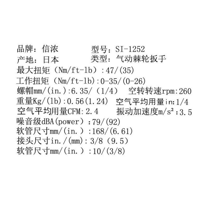 日本SHINANO信浓SI-1252气动棘轮扳手 直角风炮 1/4风板机