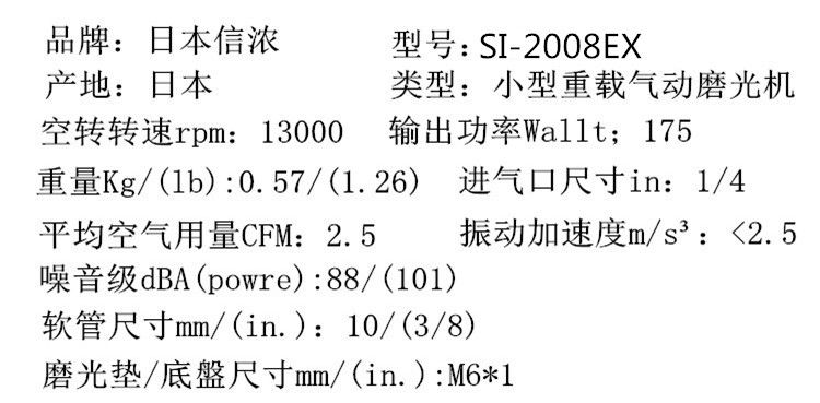 详细信息| 询价留言品牌:SHINANO 型号:SI-2008EX 加工定制:否 分类:气动打磨机 盘径 :125 inch 用途:打磨 -