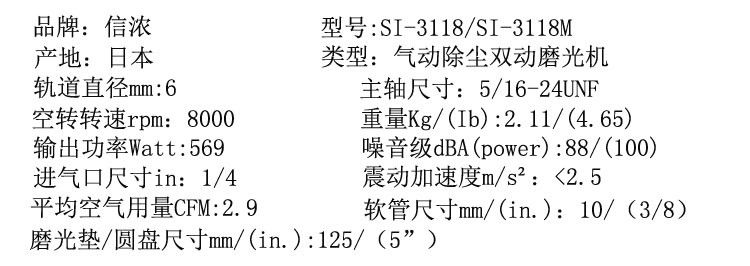 SHINANO日本信浓气动打磨机5寸气动砂纸机吸尘气动磨光机SI-3118A